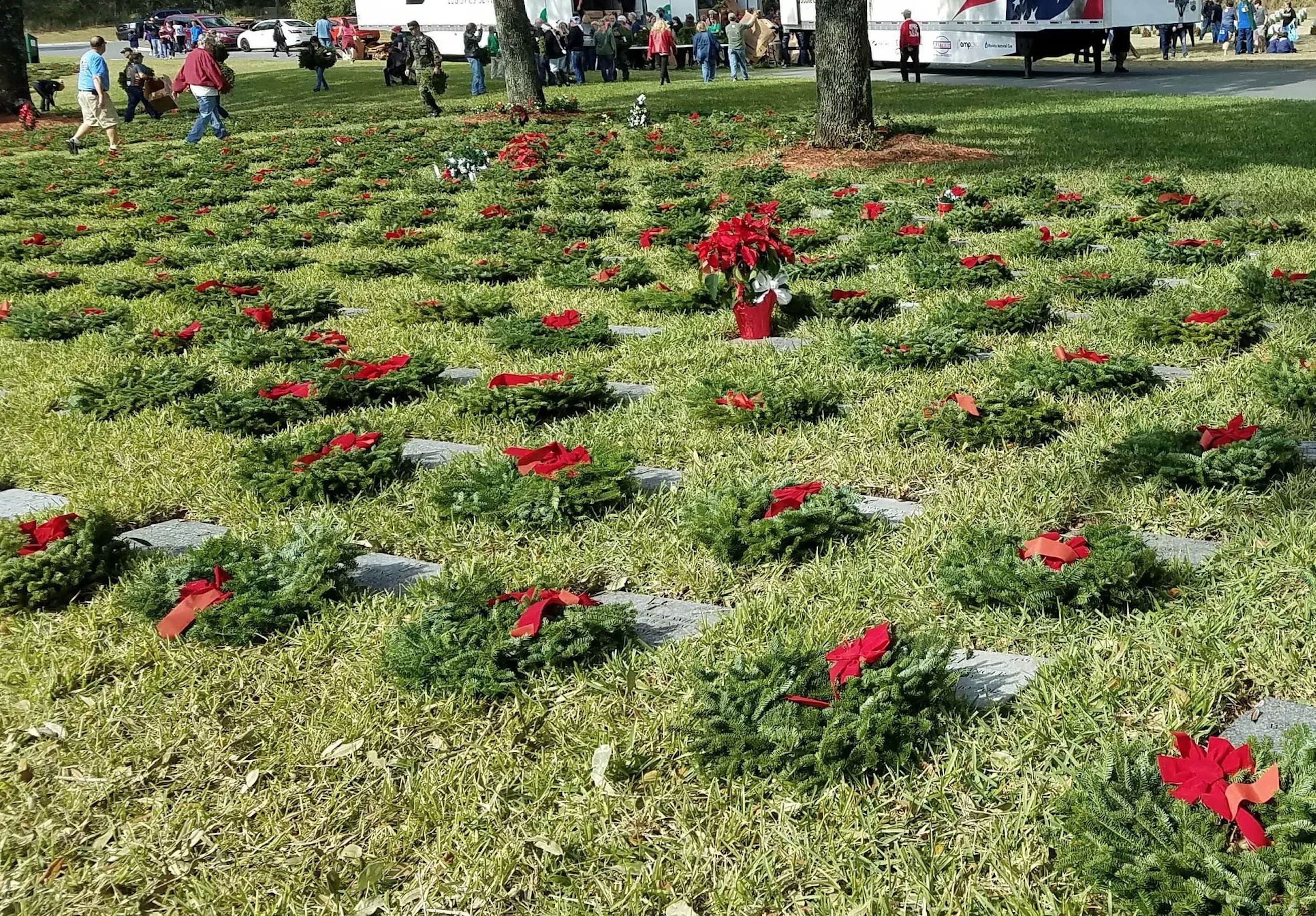 One by one, the wreaths are carefully placed at the headstones of veterans resting throughout the cemetery. As each wreath is laid, volunteers often pause to read the name on the marker and quietly say it aloud, ensuring that every hero is remembered not just as a number, but as a person who served their country with honor.